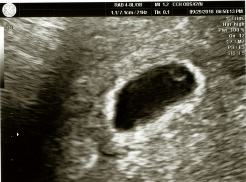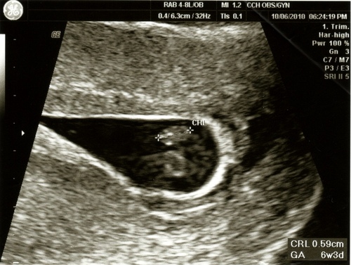 大約才五週,還沒有心跳,只確定了是子宮內懷孕。