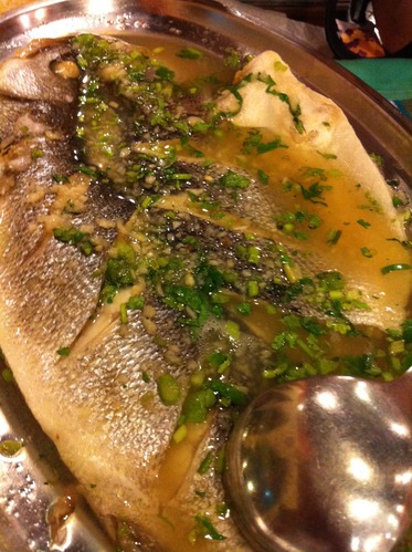 四季豆跟涼拌海鮮都是辣的,阿毛都不敢吃,這條魚就是專門為他點的。