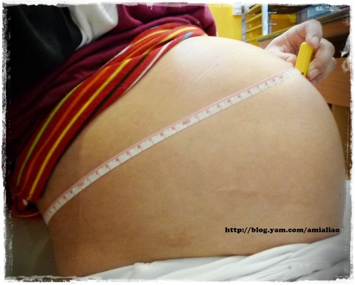 上次懷孕忘記量一下肚圍是多大,前幾天量了一下,目前是97公分!呵呵,好大唷。