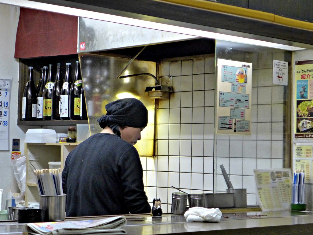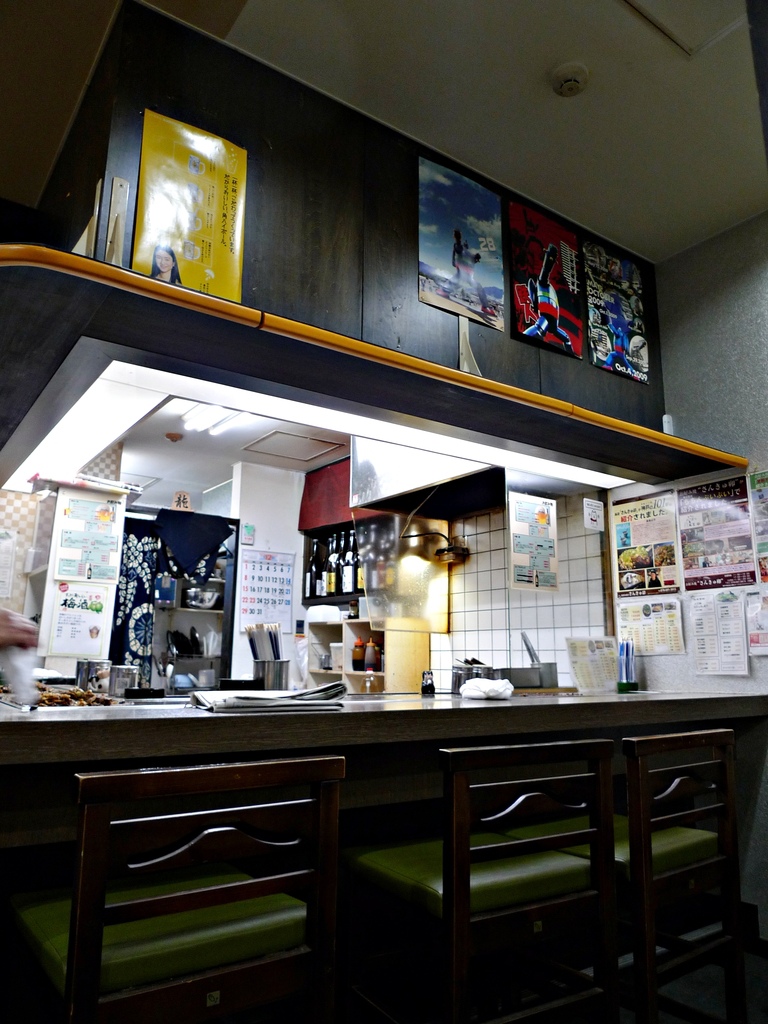 店裡面很小,圍繞著老闆工作的小廚房有一個吧檯區。