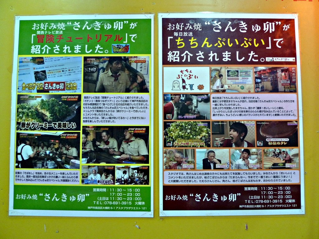 這家店位在新長田一番街裡面,就在我們吃章魚燒的店對面小巷裡,我們隨意逛逛,看到店外貼著幾張報導,
