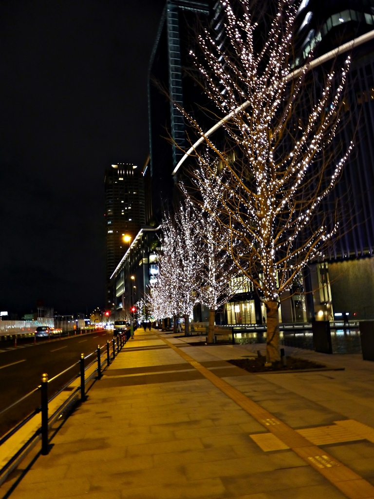 這是從JR大阪車站要走過去的路上,一整路的樹上都點滿了小燈泡,超美的!