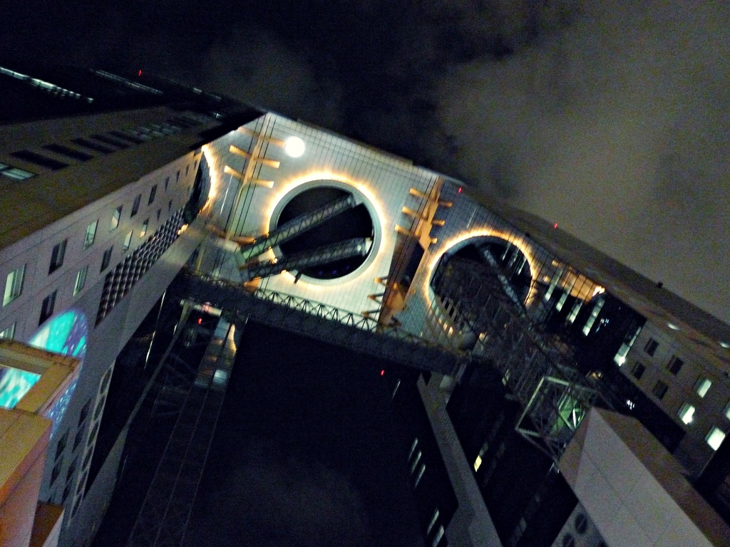 這就是在那兩根斜斜的手扶梯裡面,旁邊就是透明玻璃,可以一邊看外面的夜景。