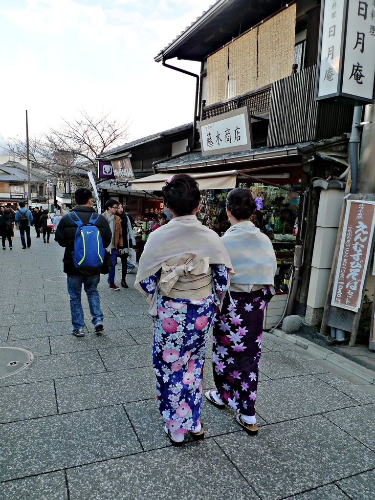 和服女子也跟我們走一樣的方向,我又偷拍了他們的背影,呵呵!跟美麗的街景好搭唷!