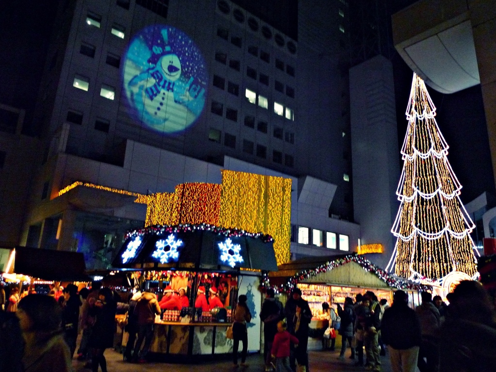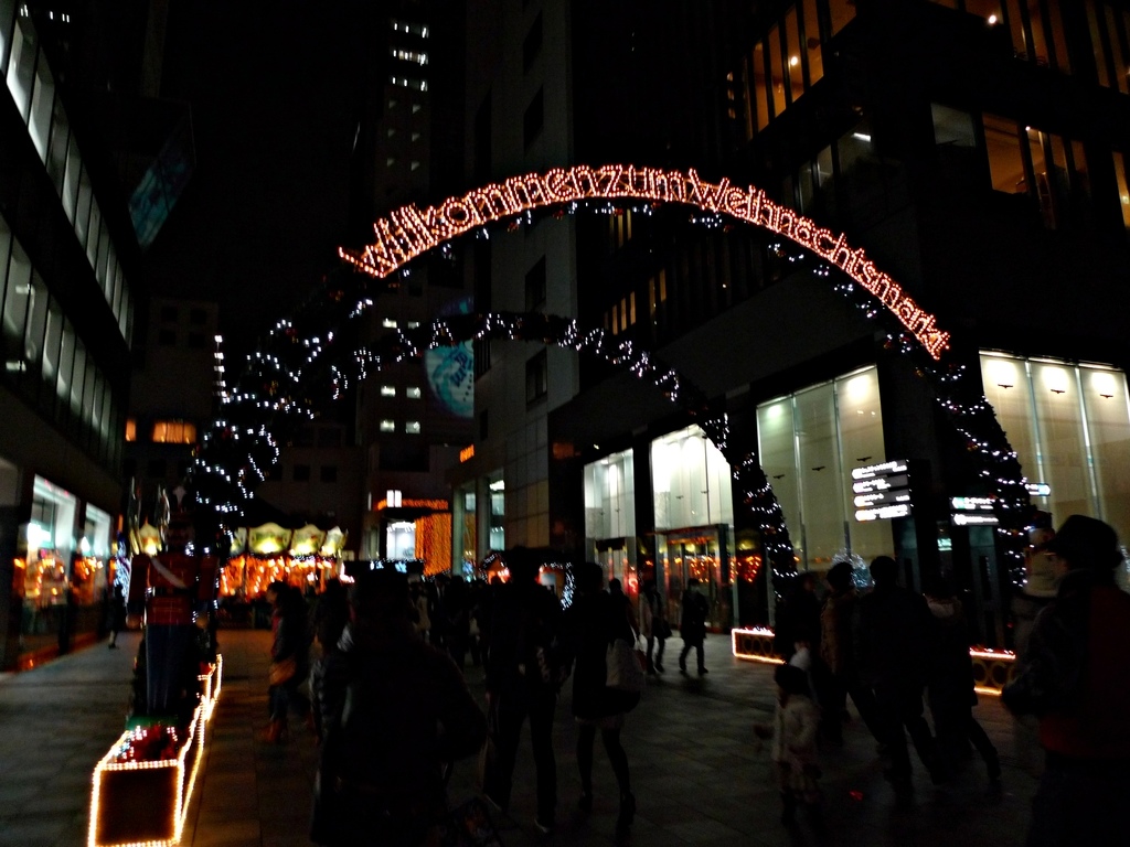 這個德國聖誕市集就在大阪梅田的藍天大樓一樓戶外廣場,也就是空中庭園展望台的一樓,