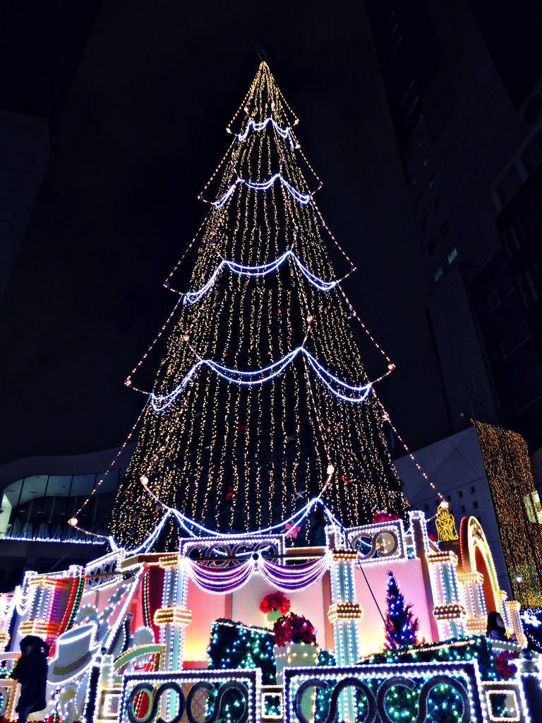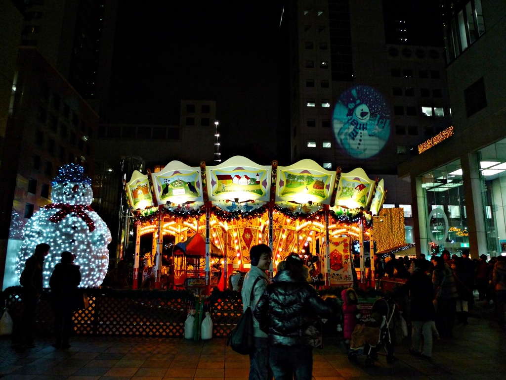燈光會一直不停的變幻,底下的四周也有一些雪橇、聖誕禮物等等裝飾,很漂亮。