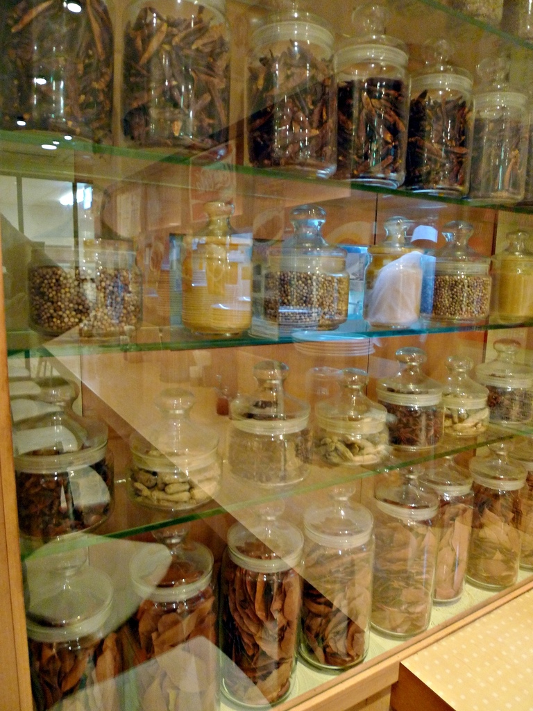 吧台旁邊是這一面放滿了香料罐的牆,琳瑯滿目啊!好多唷。