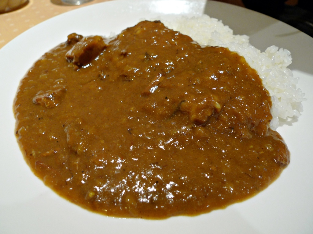 這家咖哩飯好像是著重在香料的味道,跟我們家平常那種加了許多紅蘿蔔、馬鈴薯和洋蔥等蔬菜的咖哩不同。