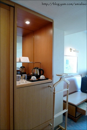 這邊有電熱水壺、杯子,沒有茶包咖啡包、甚麼都沒有!空盪盪的Mini bar!