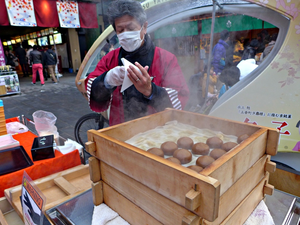 這是在中之島公園旁邊的店家,我們一樣是看到熱騰騰的直冒煙、感覺很溫暖,就過去買了一包。