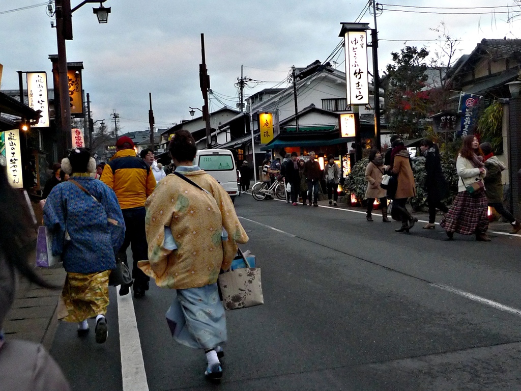 不過路上行人非常多、平常嵐山的觀光客就多,加上當時正好有嵐山花燈路、遊客更是特別的多!