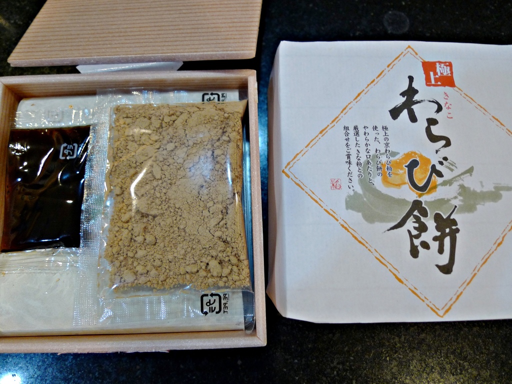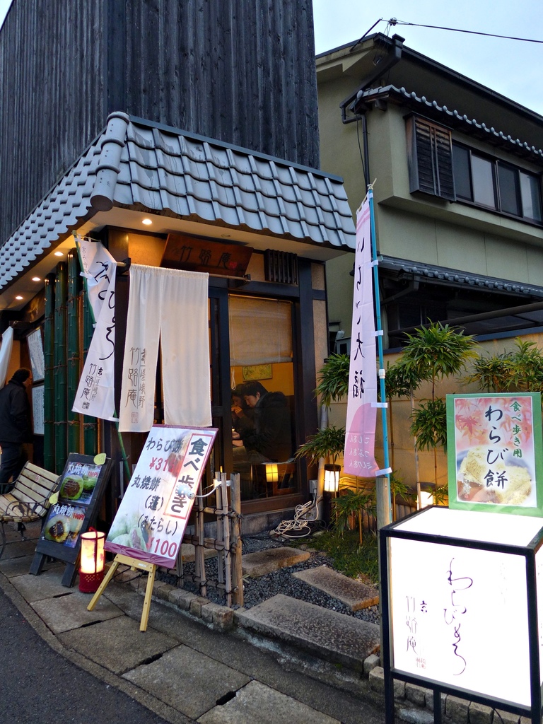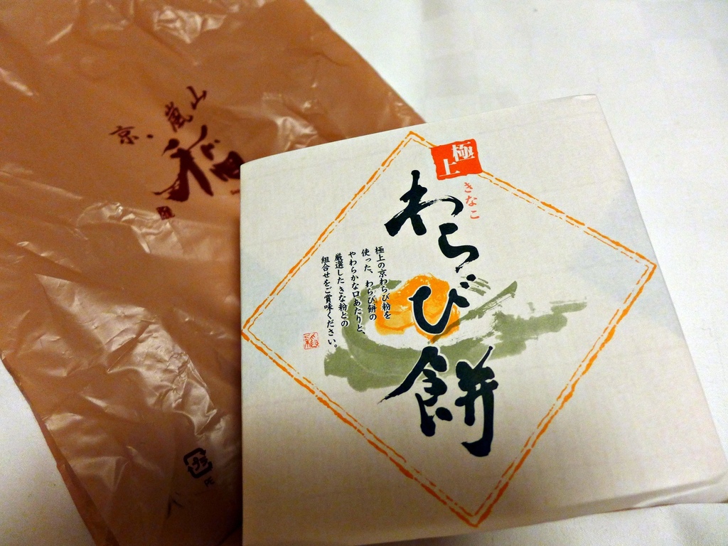 這好像是叫做<蕨餅>?在京都常常看到,但是買的時候是冷的、包裝好的,也不知道跟蒸籠裡的是不是一樣的東西耶!哈。