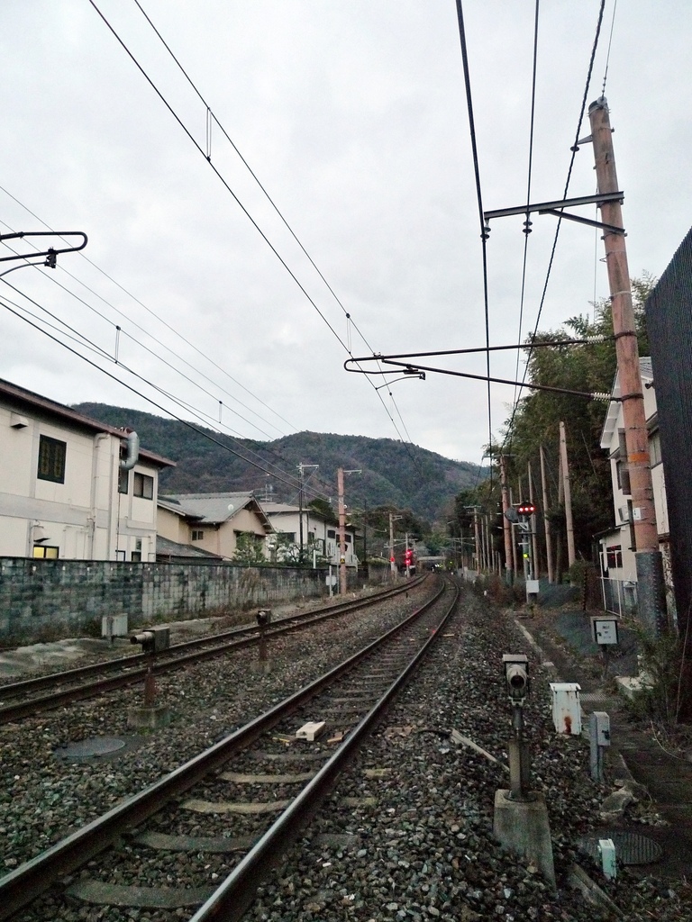 走到這邊大概就是嵐山大街的盡頭了,遇到這個鐵道應該是嵐山小火車的軌道?