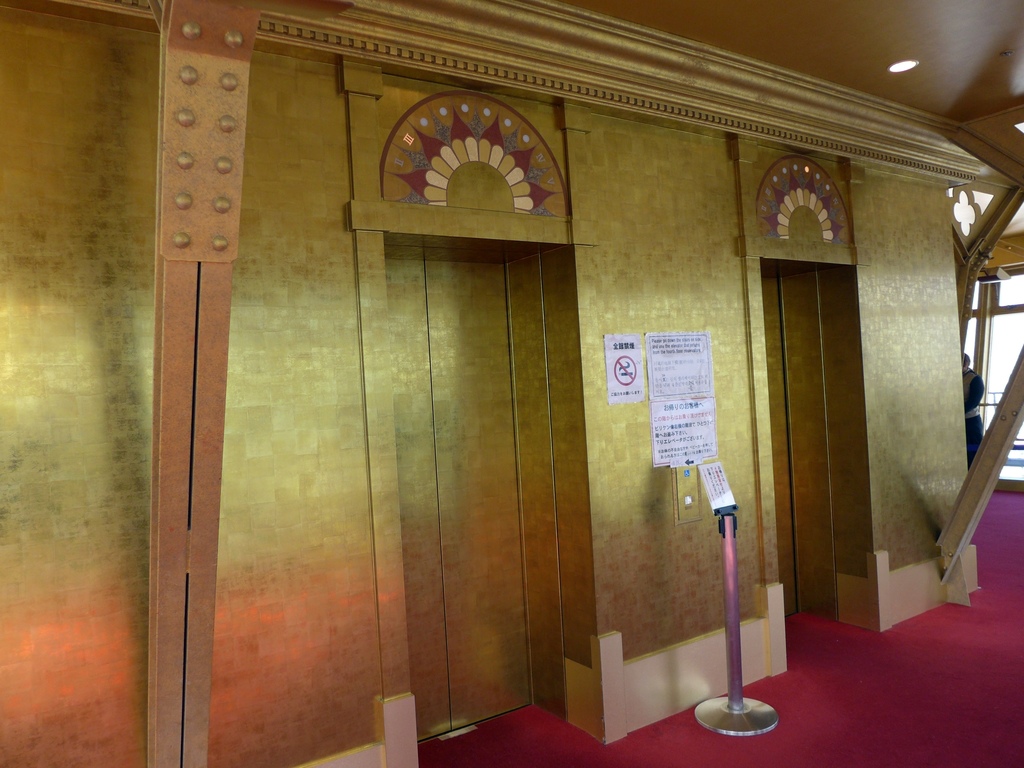 出電梯發現這電梯也太有氣勢啦,金光閃閃,果然是很有那個時代宣揚國力的樣子啊!一整個財大氣粗,哈哈哈。