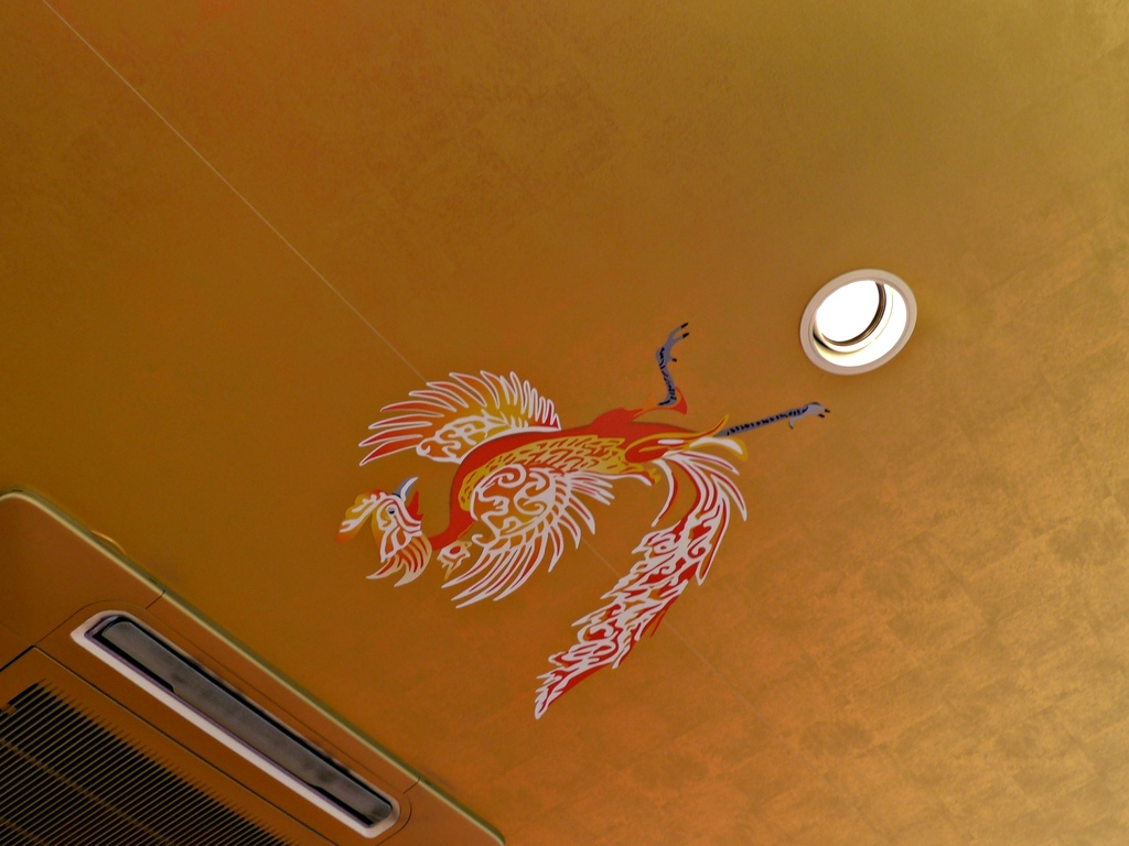 屋頂也是塗成金色的,還畫了一隻很吉祥的動物,這這這是鶴吧?我個人很沒知識,講錯別罵我。