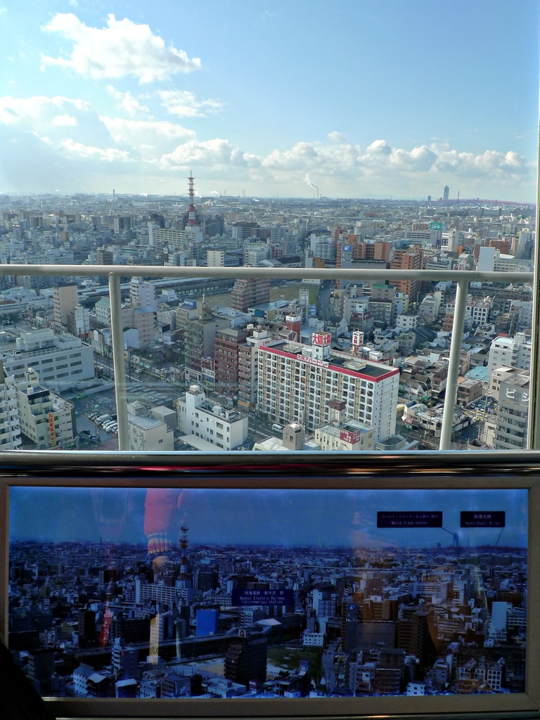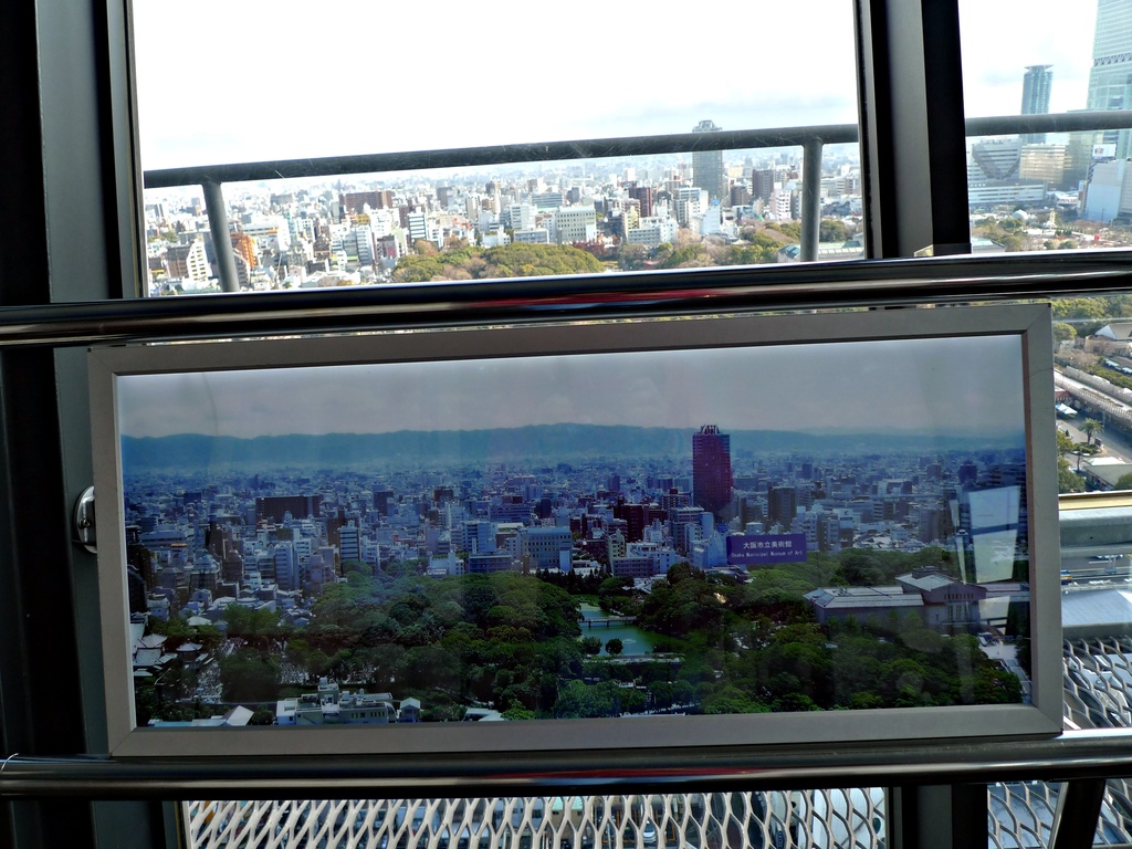 四面八方都是透明窗戶,可以看看景觀,而且每一個方向都還有設置照片,上面有標出著名的建築物,可以和親眼所見的景觀對照。