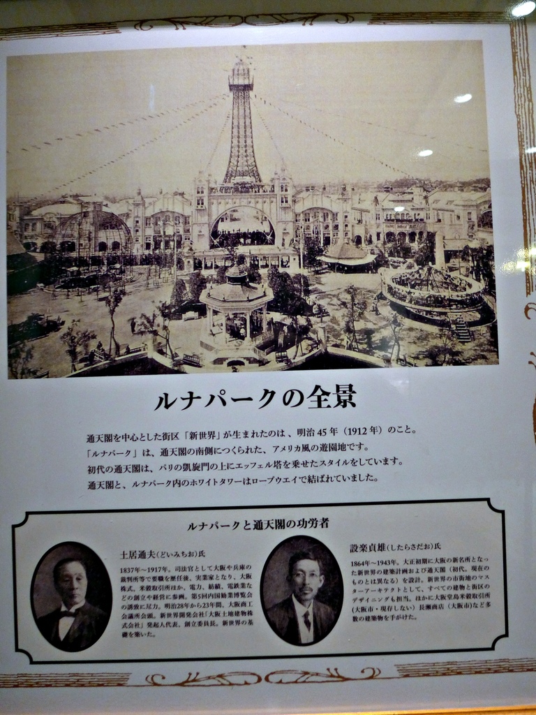 第一代通天閣是在1912年仿巴黎鐵塔見的,後來被大火燒毀,現在這個通天閣是1956年重建的。