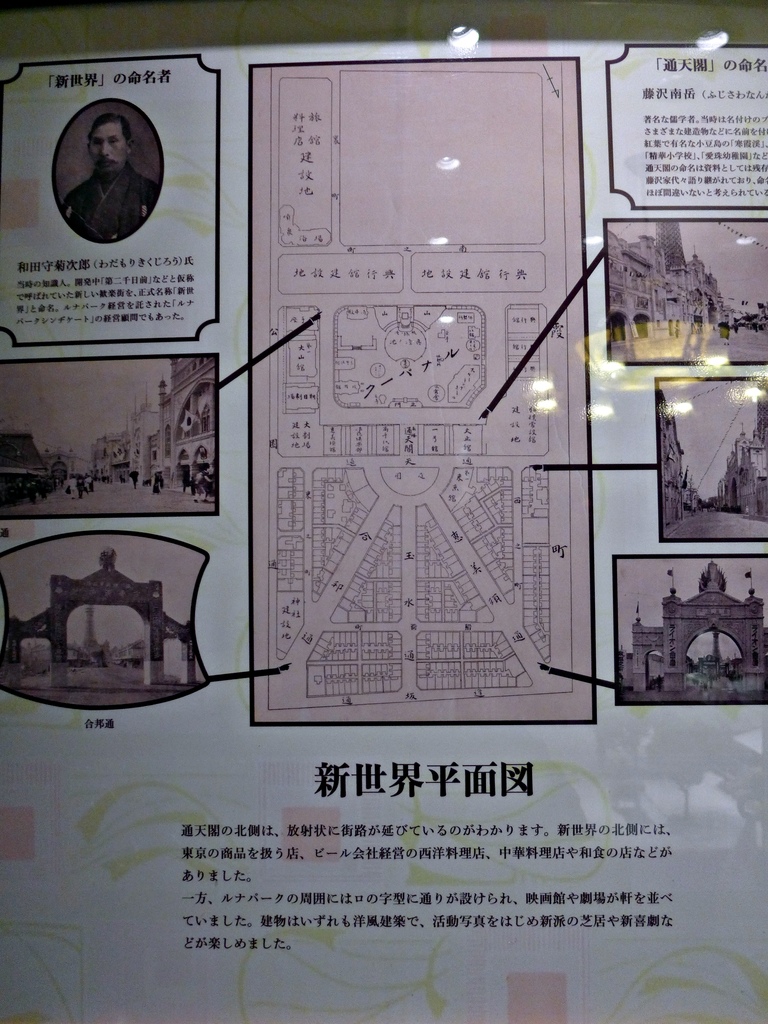 街道圖看起來跟現在沒有什麼不同,只是許多建築都重建了吧,包含通天閣也曾經重建過。