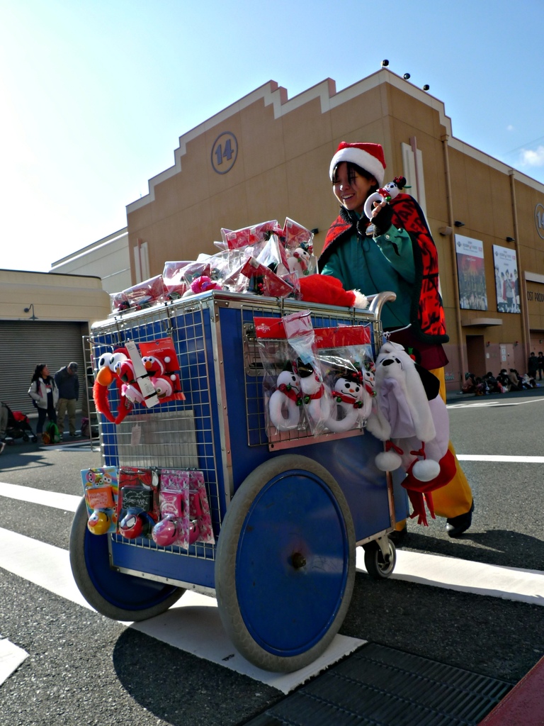 這時候也有工作人員推著許多物品在販售,雪人搖鈴跟elmo髮箍都好可愛唷。