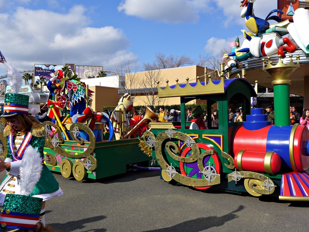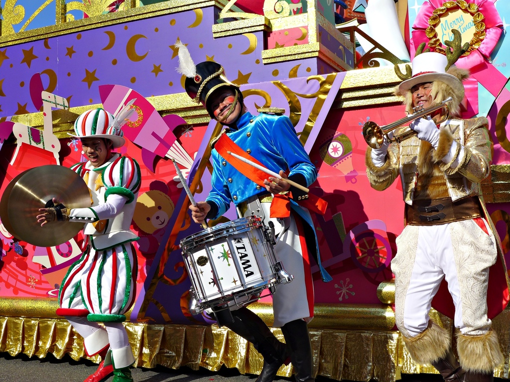進園之後才剛玩了一項設施出來,就看到有人在路邊佔位子了,原來是一點半的聖誕遊行快要開始了。