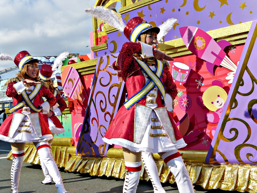 花車上則是漂亮的女孩們也在表演著,讓觀眾們的眼神都不知道該關注在哪裡!到處都好精采好好看喔。