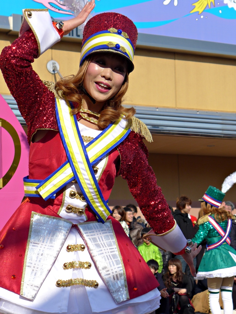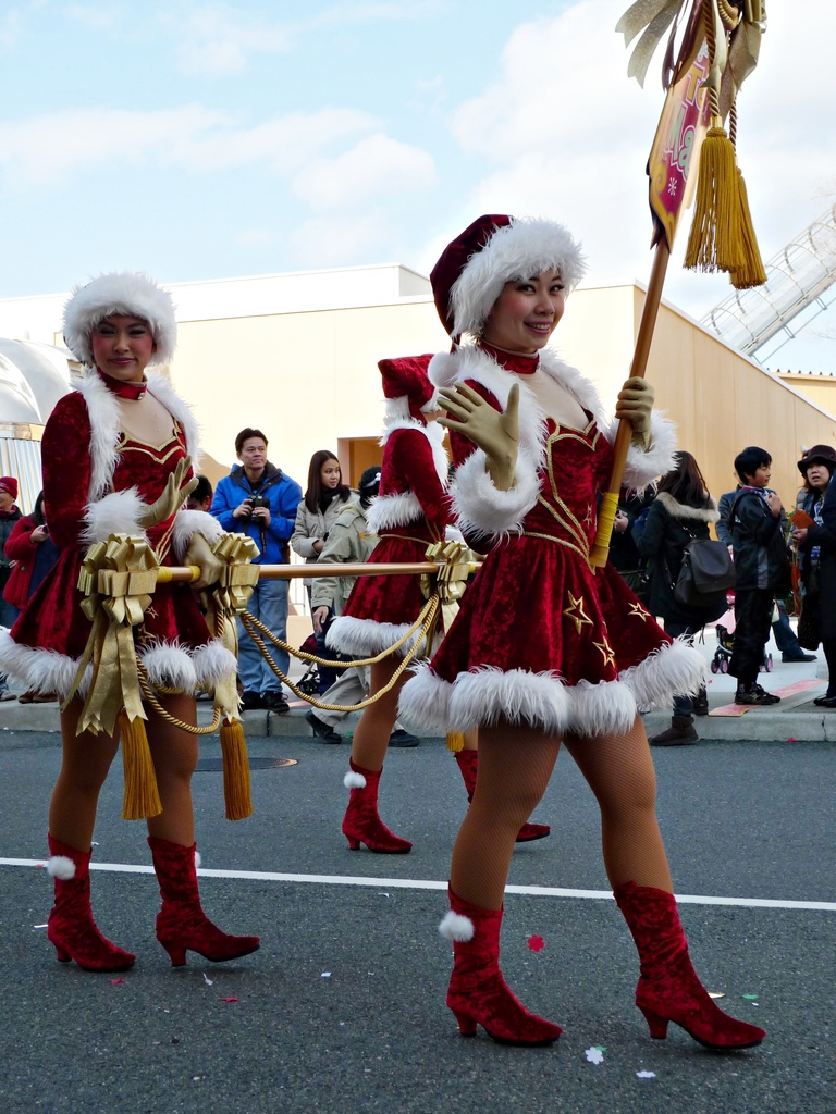 遊行開始,最前列的是聖誕小姐們!哈哈。