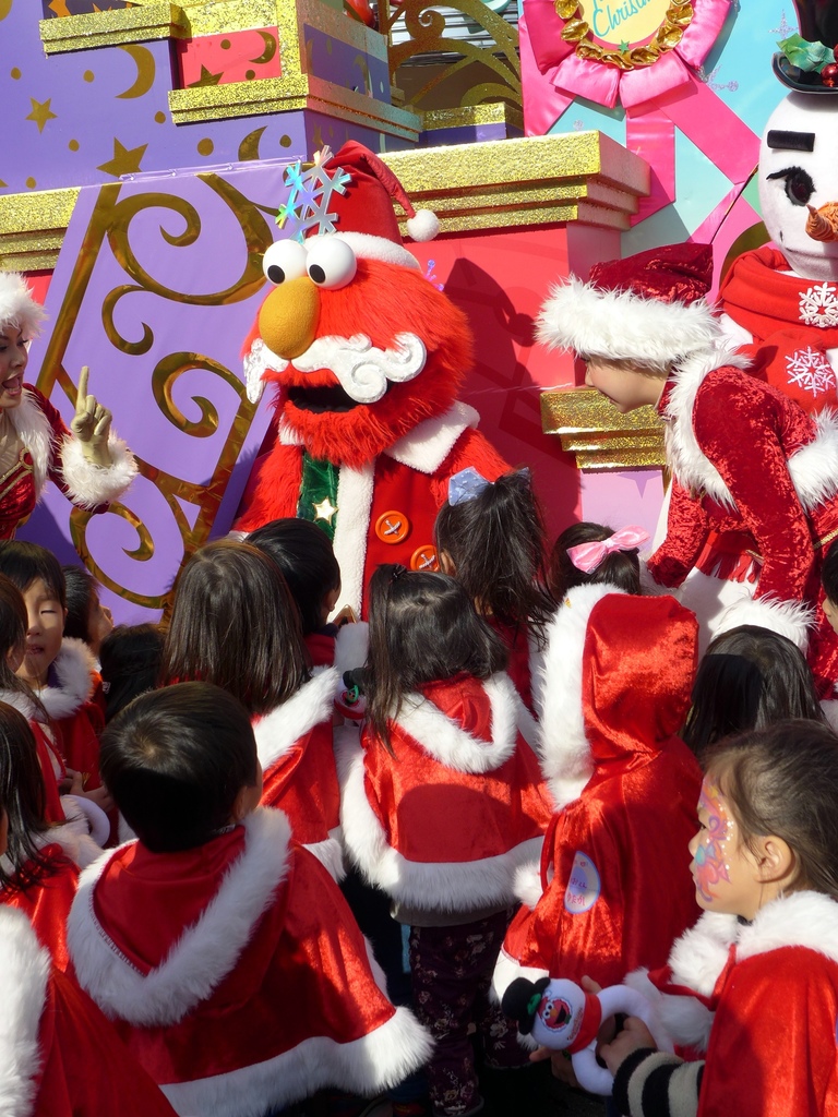 喔耶耶~elmo來啦!而且還打扮成聖誕老公公的樣子貼了鬍子呢!超級可愛的啊。