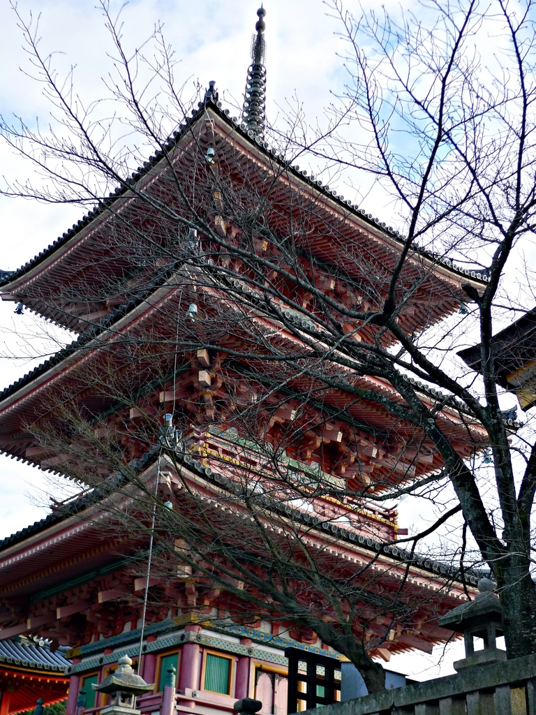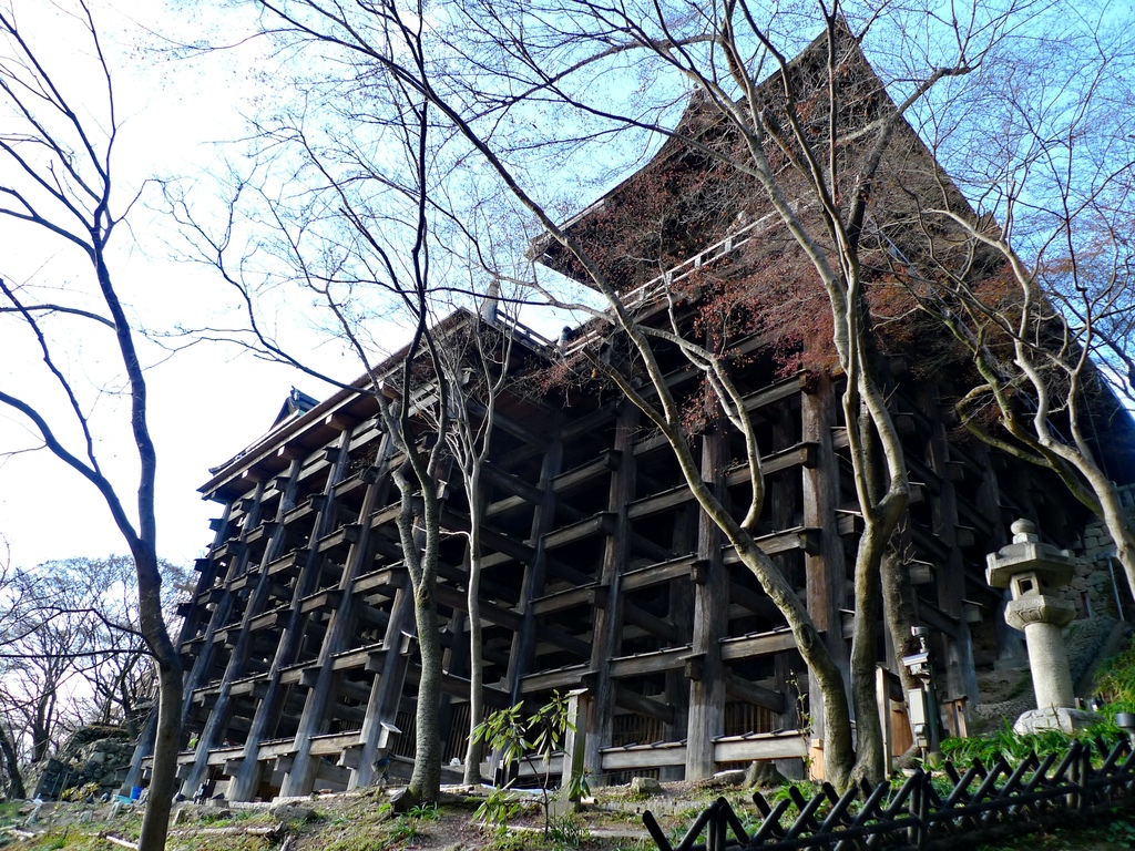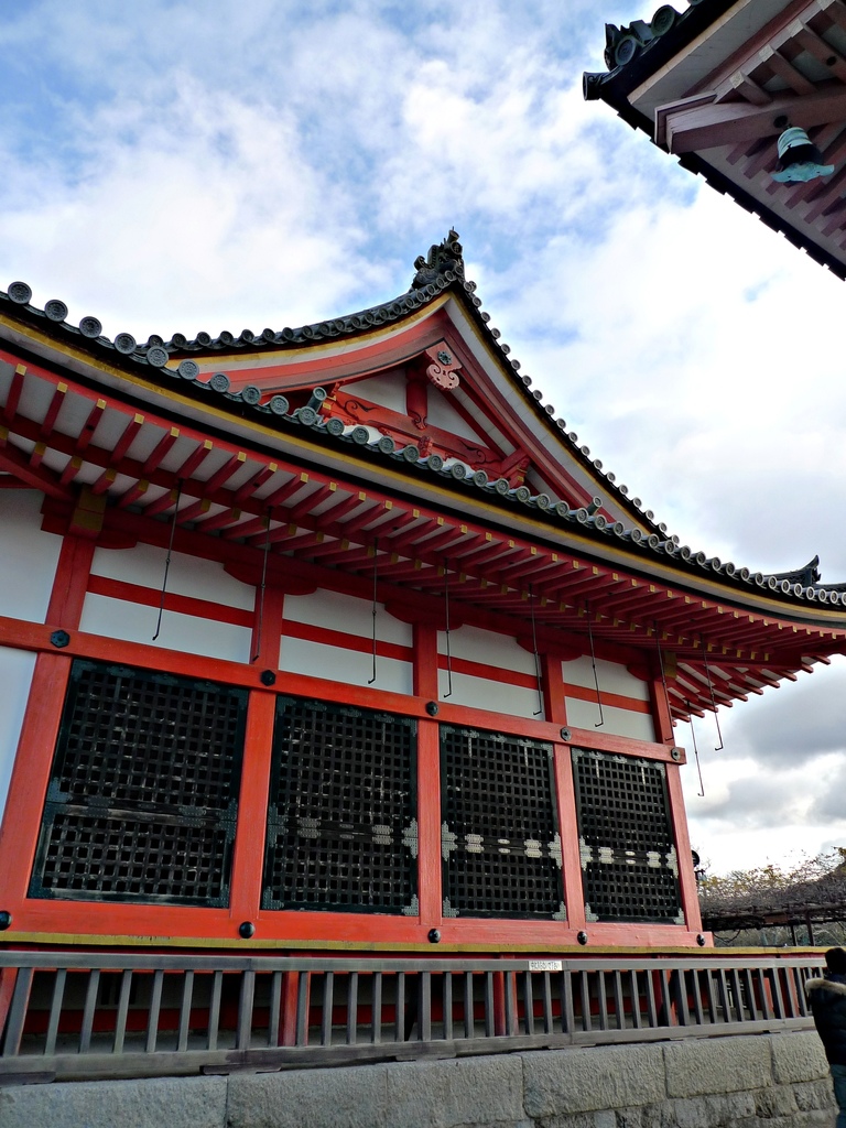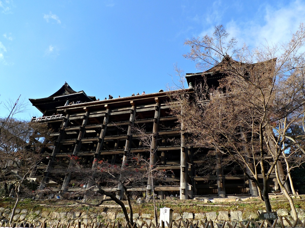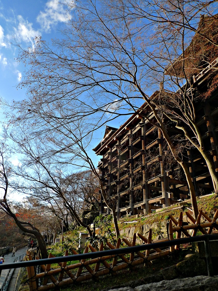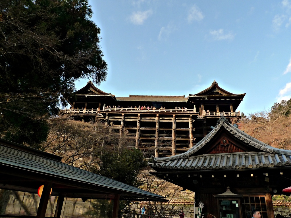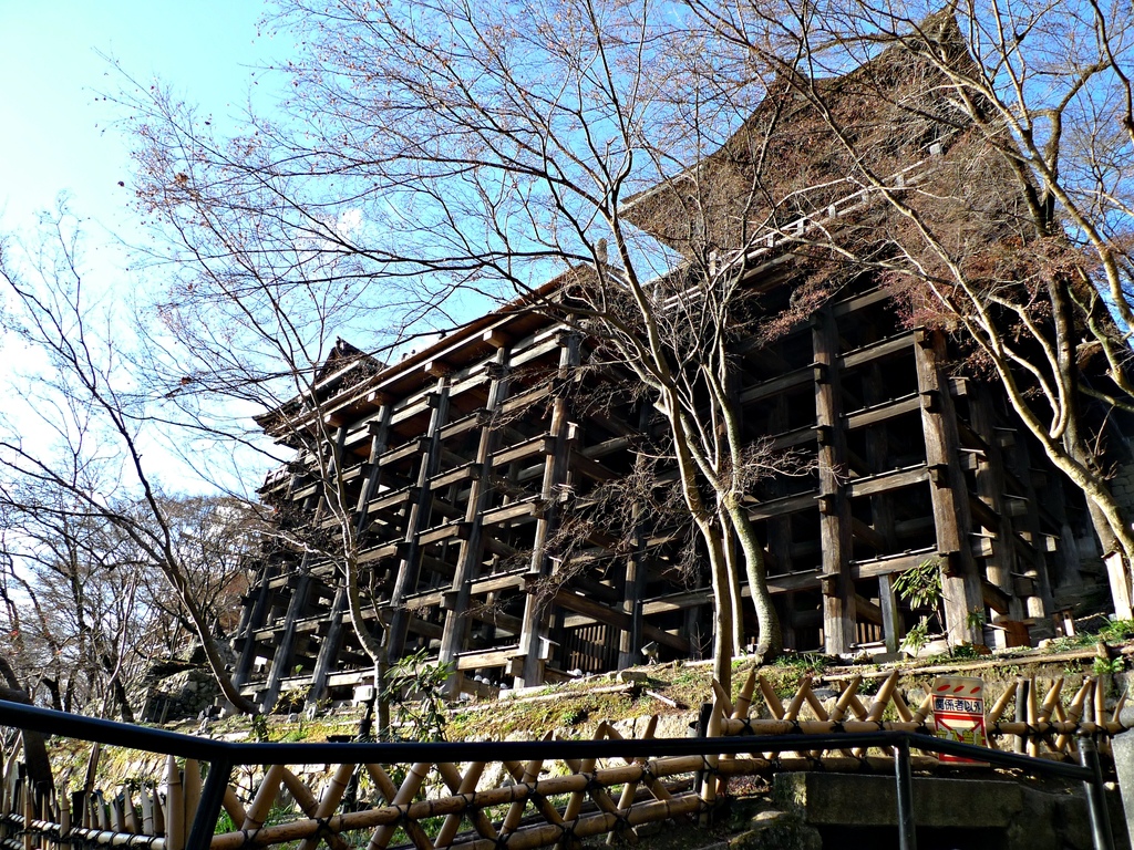 清水寺是棟樑結構式的寺院,剛剛站在上面的清水舞台其實是懸空的,底下由139根高數十米的大圓木支撐,而且完全沒有用一根釘子。