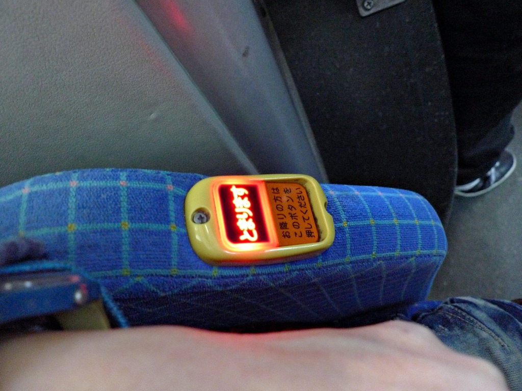 只要看到螢幕上秀出的下一站是要下車的點就可以按了,現在的車子站名都會有漢字、也很安心。