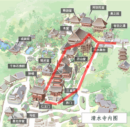 這是清水寺內部的樣子,這圖也是從官網上抓的。