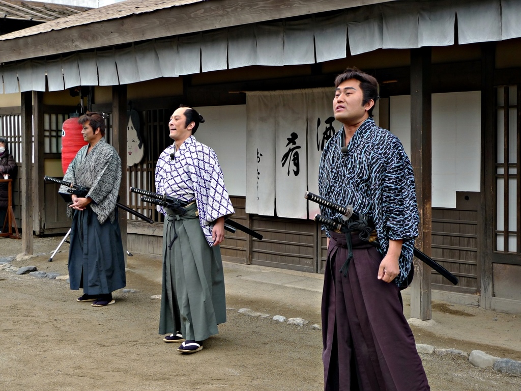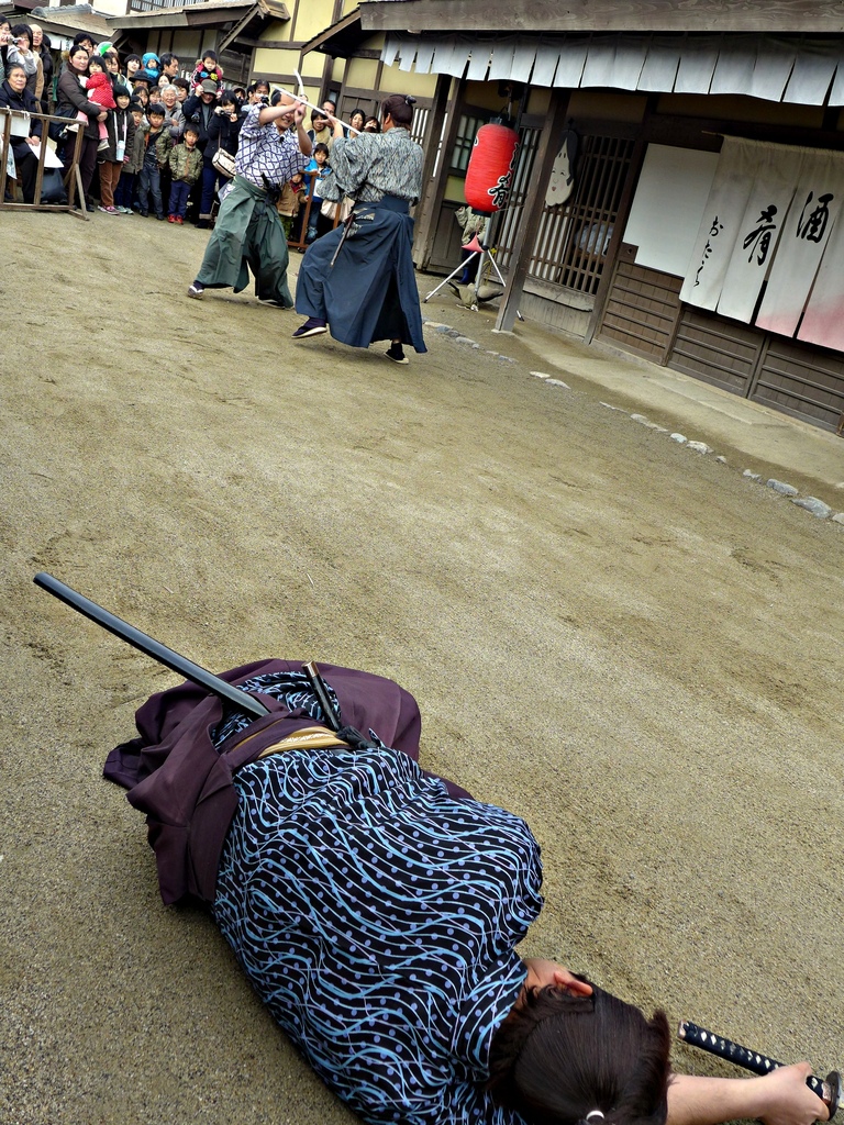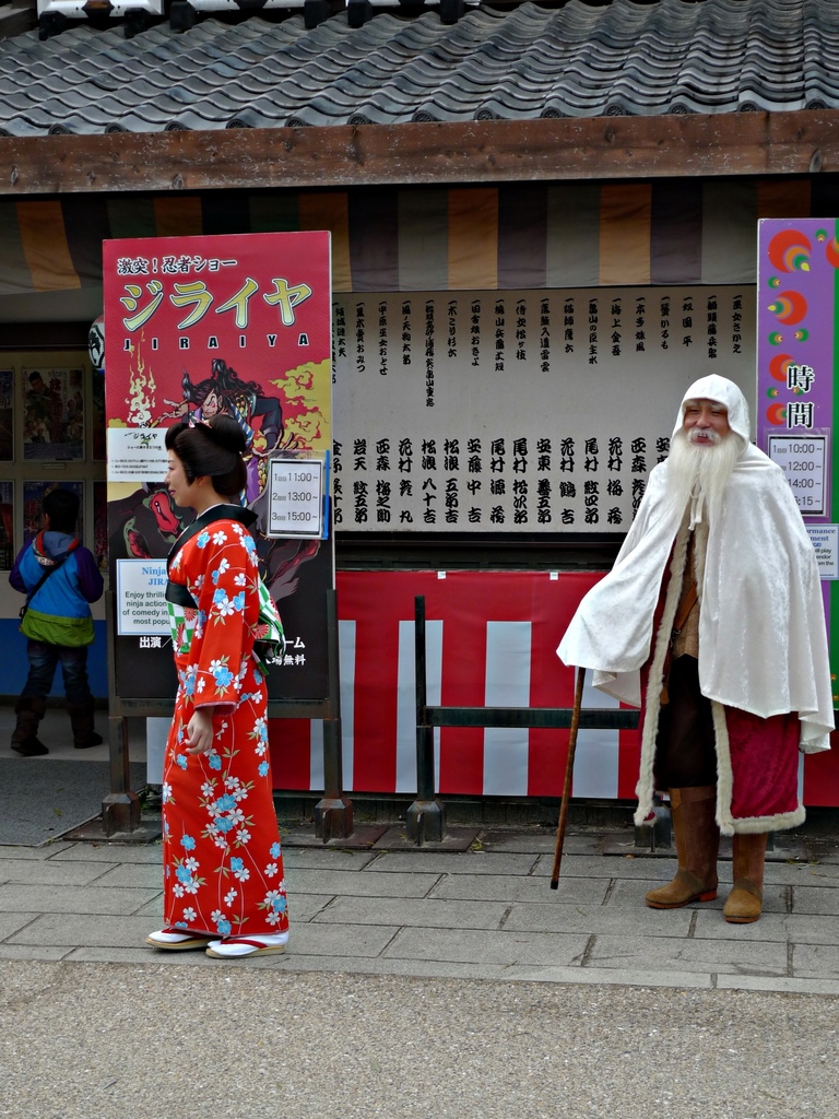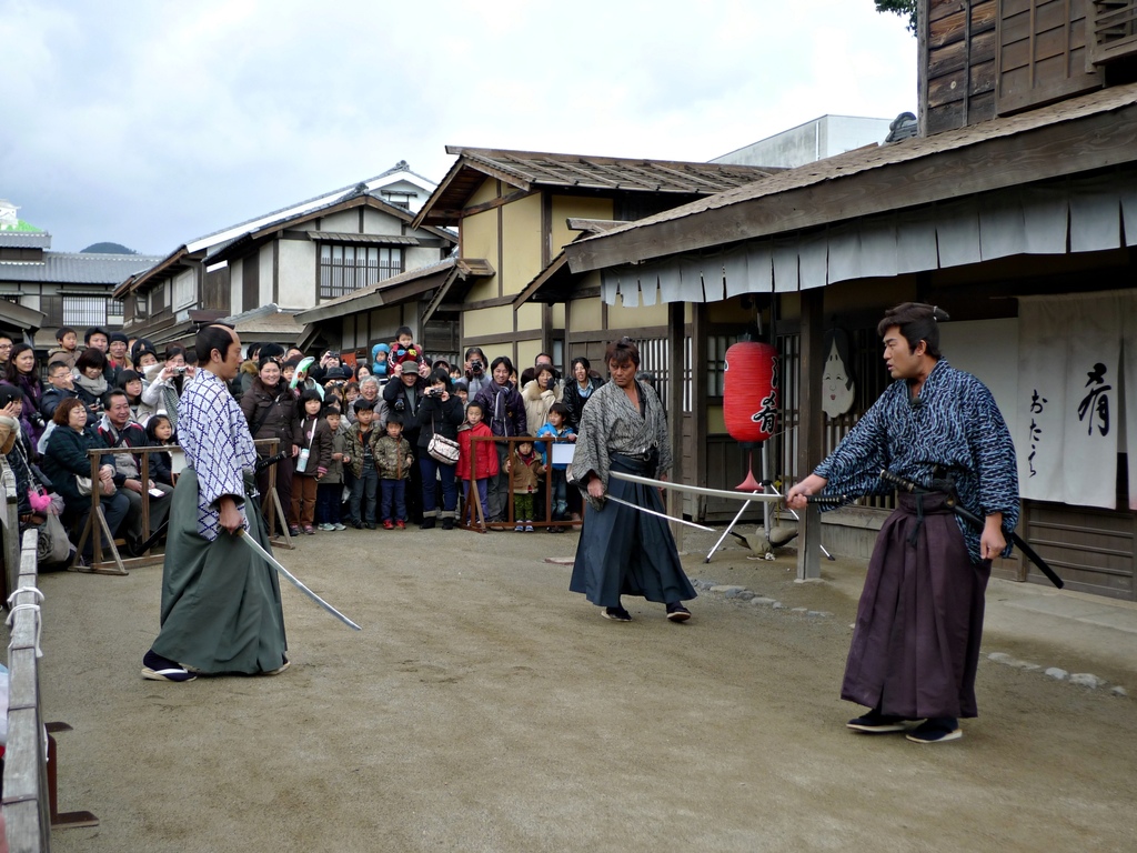 東映太秦映畫村裡面有一個很精采的忍者秀表演節目,在我們悠閒的往村子裡逛過去的時候,