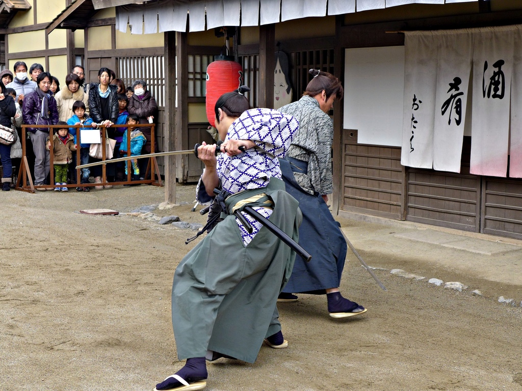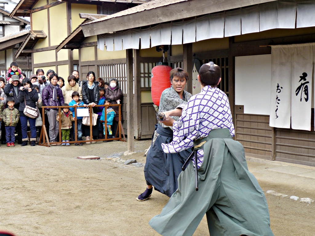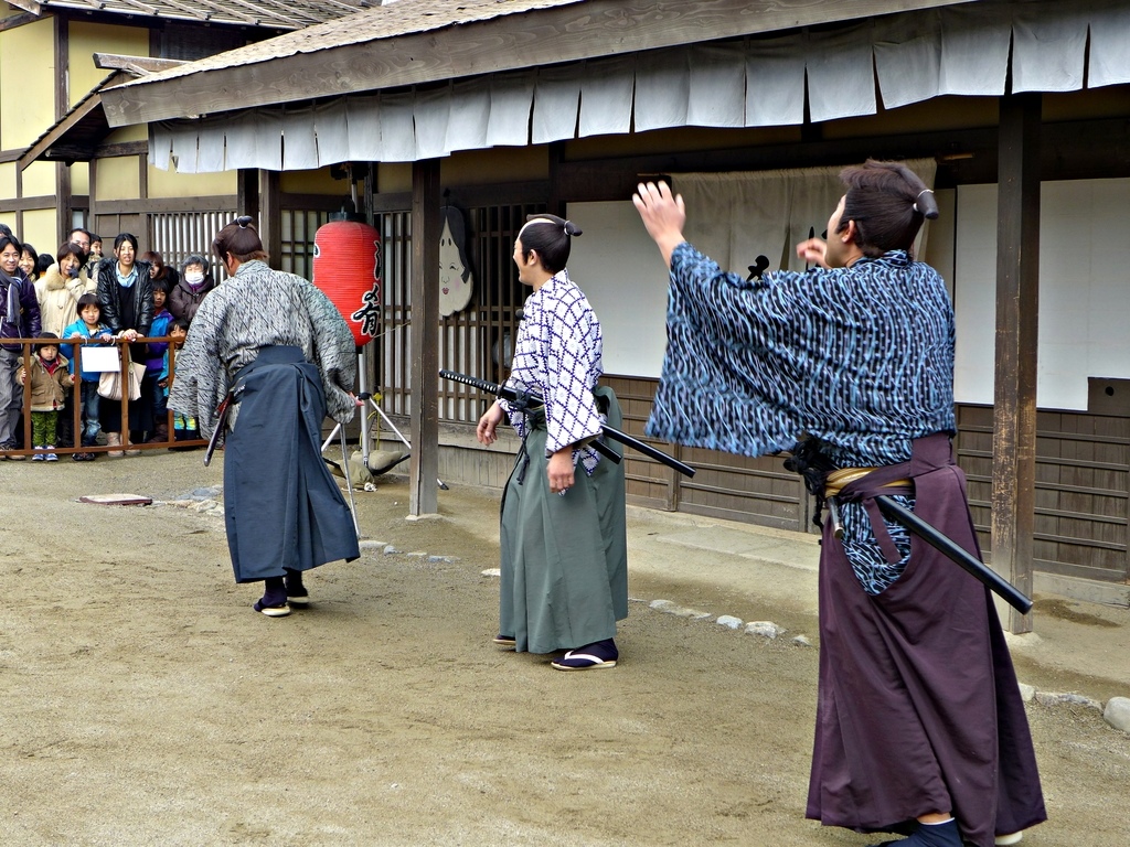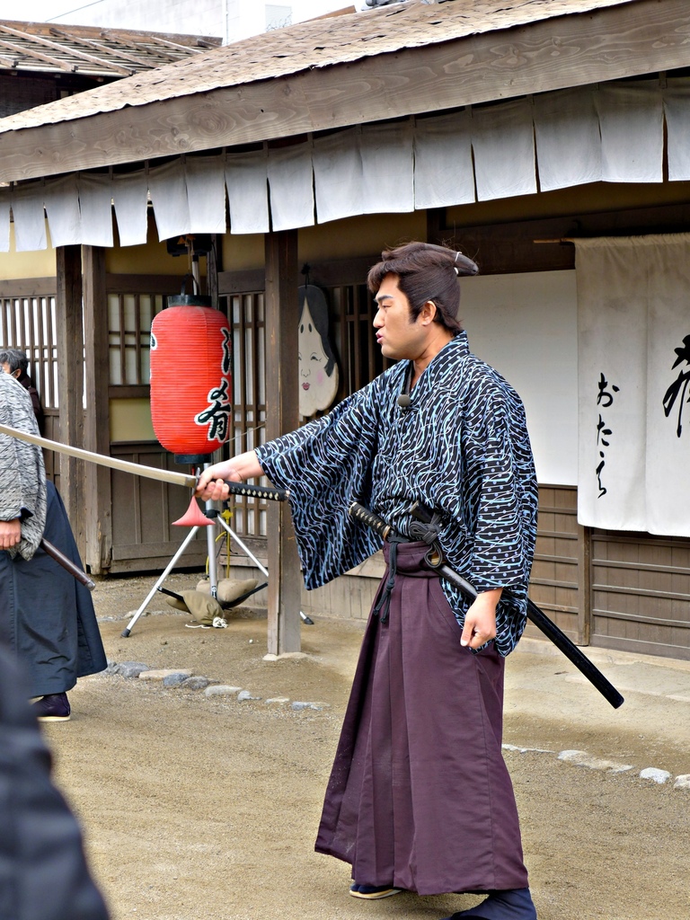 東映太秦映畫村裡面有一個很精采的忍者秀表演節目,在我們悠閒的往村子裡逛過去的時候,