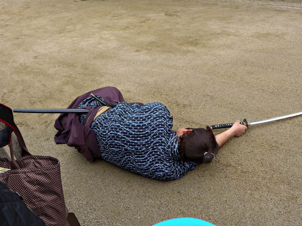 在這邊遇到幾位可以拍照的古裝人物,尤其是封面那位大方把武士刀借給小裘的先生!小裘整個心情瞬間好轉!哈哈哈。