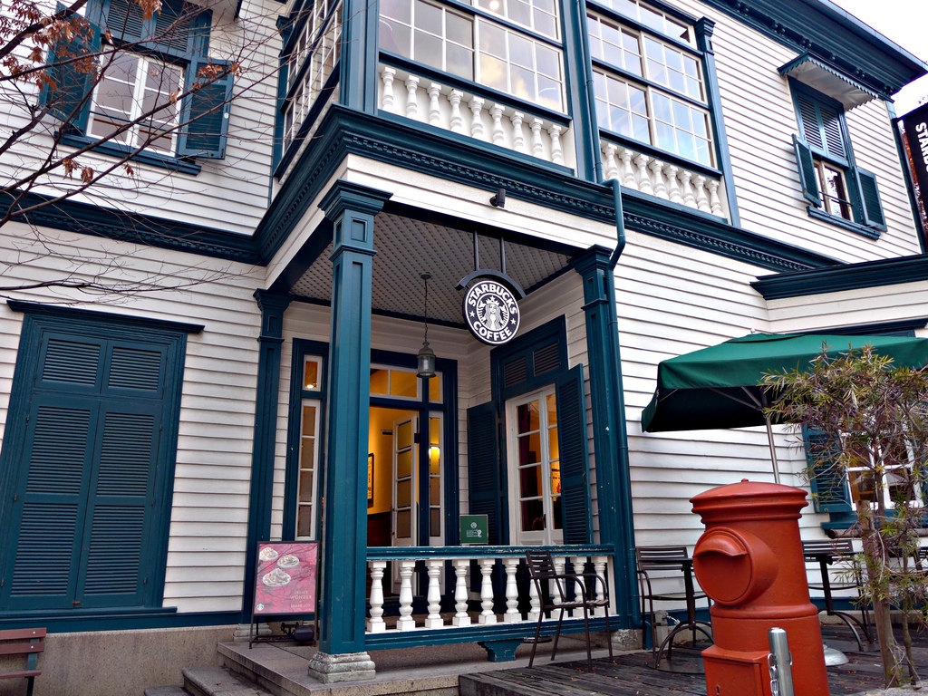 這個星巴克是日本官方登錄的有形文化財產設施,真的是一個古蹟唷!