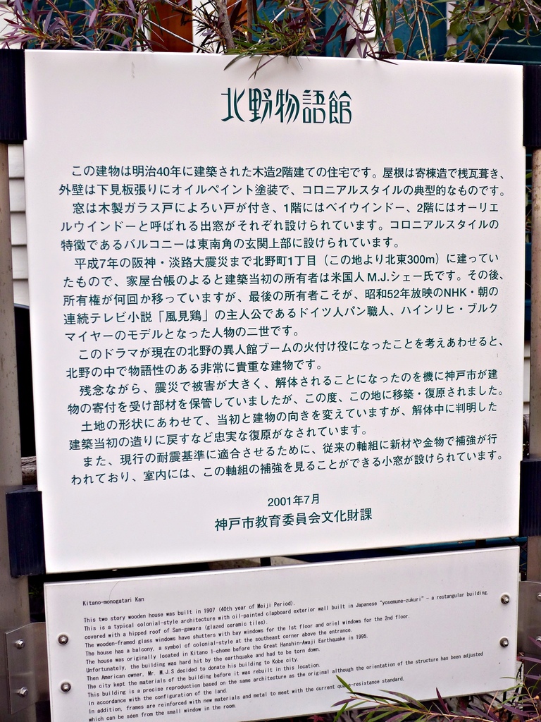 這一棟建築是在西元1907年,由美國人建造的2層樓木造建築,後來在阪神大地震時倒塌,之後才又重建成北野物語館,