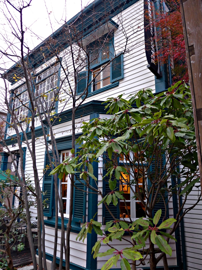 這應該也是一棟古蹟等級的房子了吧!配上剩下幾片紅葉的樹木,好有FU唷!