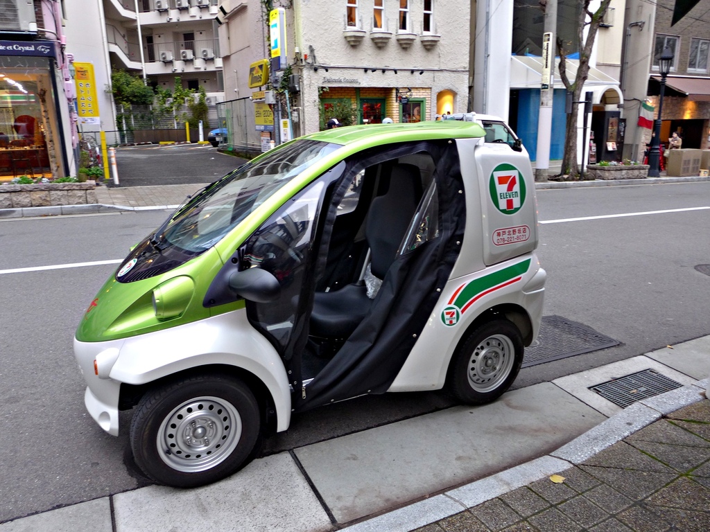 最後這是在路上偶然看到的7-11宅配小車,也太可愛了吧!一人小汽車!超酷的。