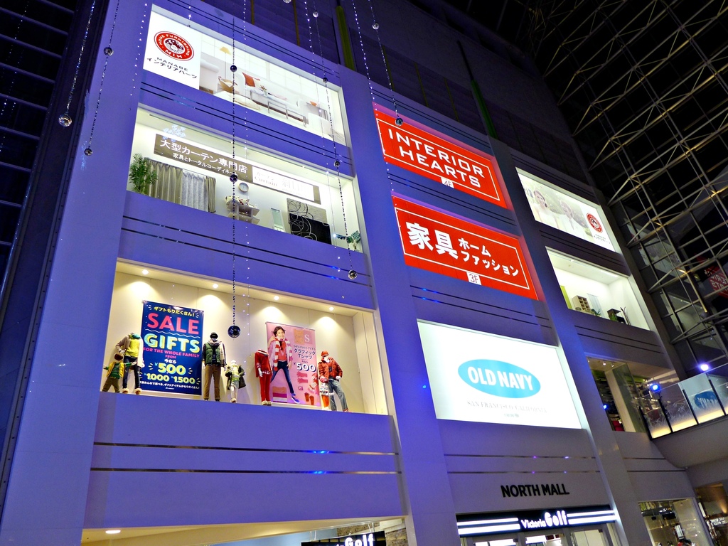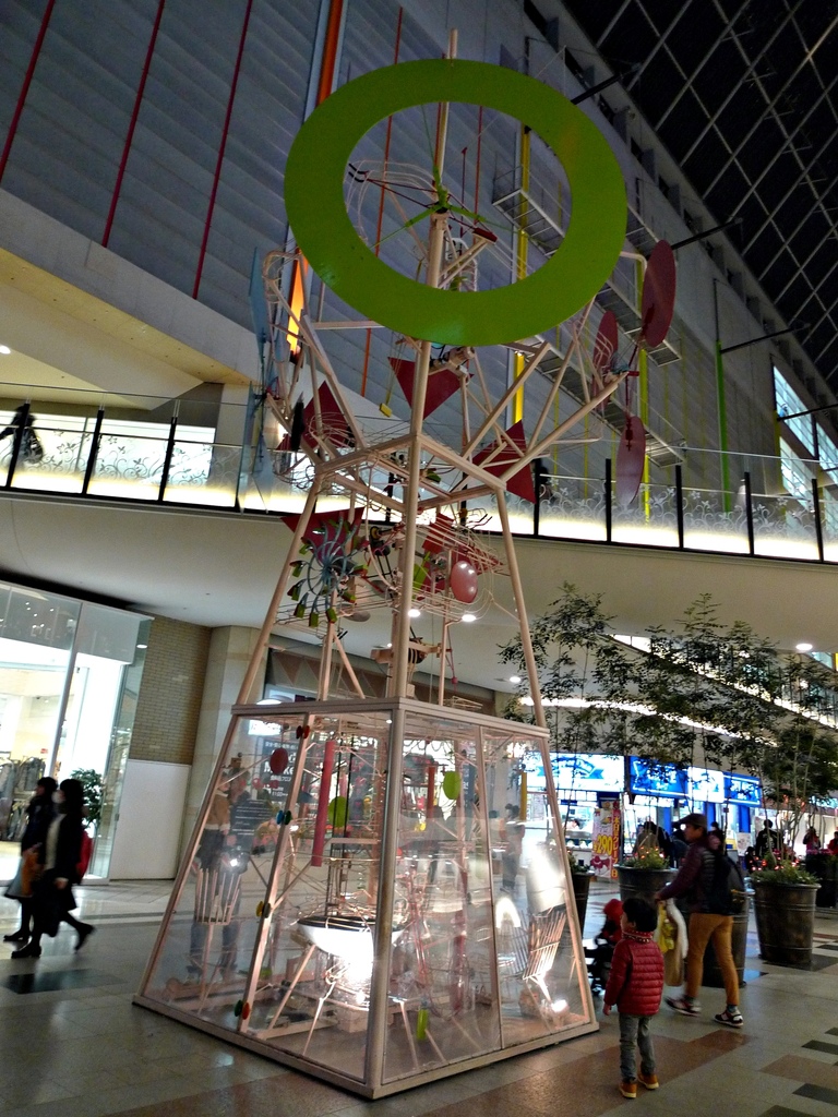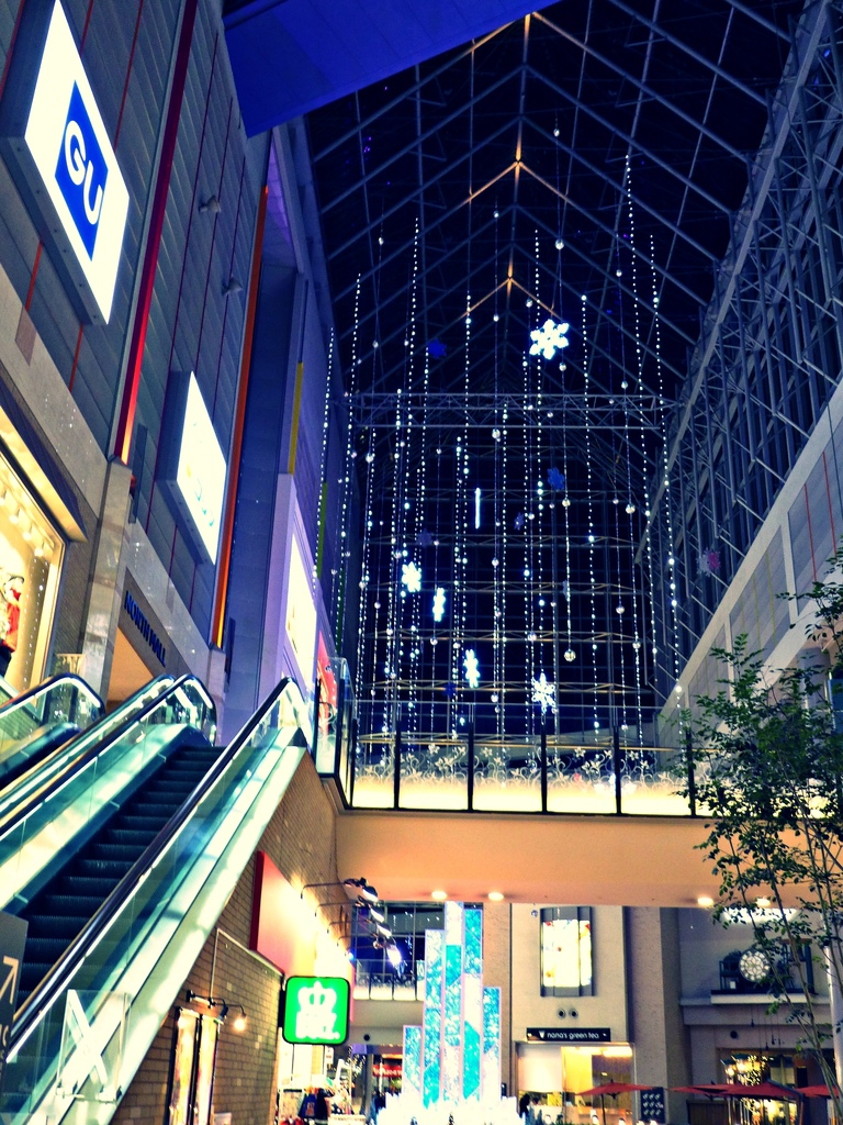 這個umie百貨有分南北兩棟,中間類似穿堂的空間在最頂端有屋頂,所以也感覺是在室內,
