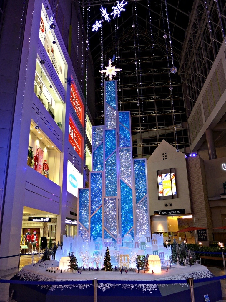 所以umie百貨可能是以<雪>為主題來佈置聖誕節裝飾,好漂亮。