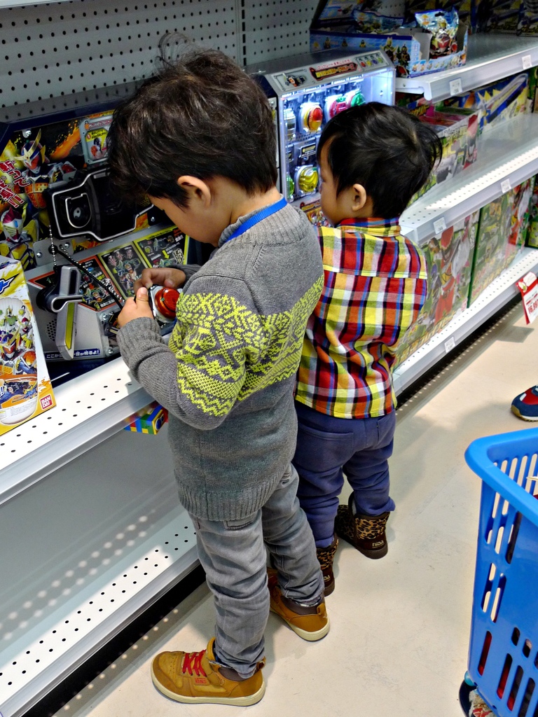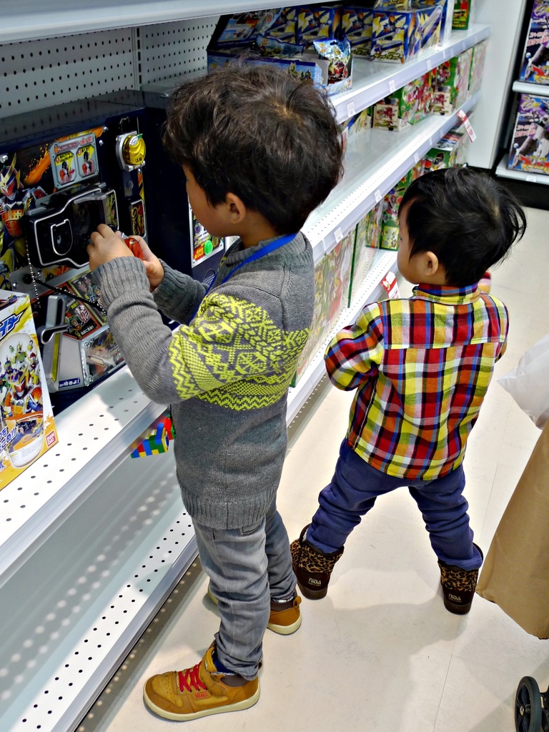 所以兩個小孩大概也是想說:不能買就在這裡先試玩個過癮好了。
