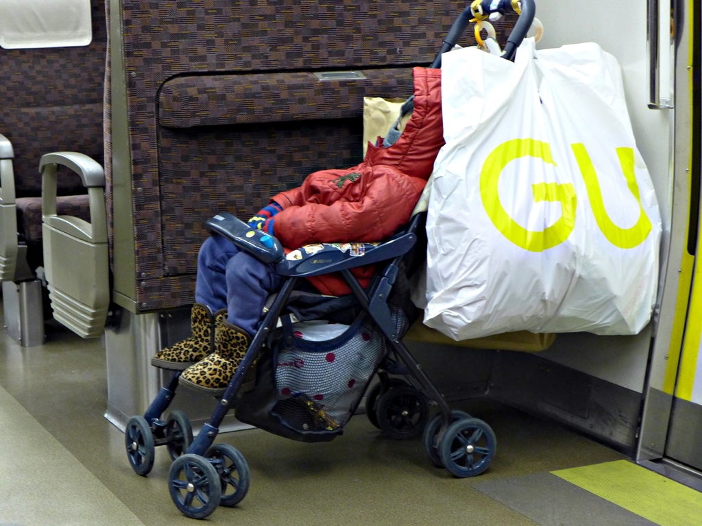 小裘還沒去搭車的時候就已經睡了,我們把他連人帶車放在旁邊,毛爸坐這個方向可以一直注意著他。