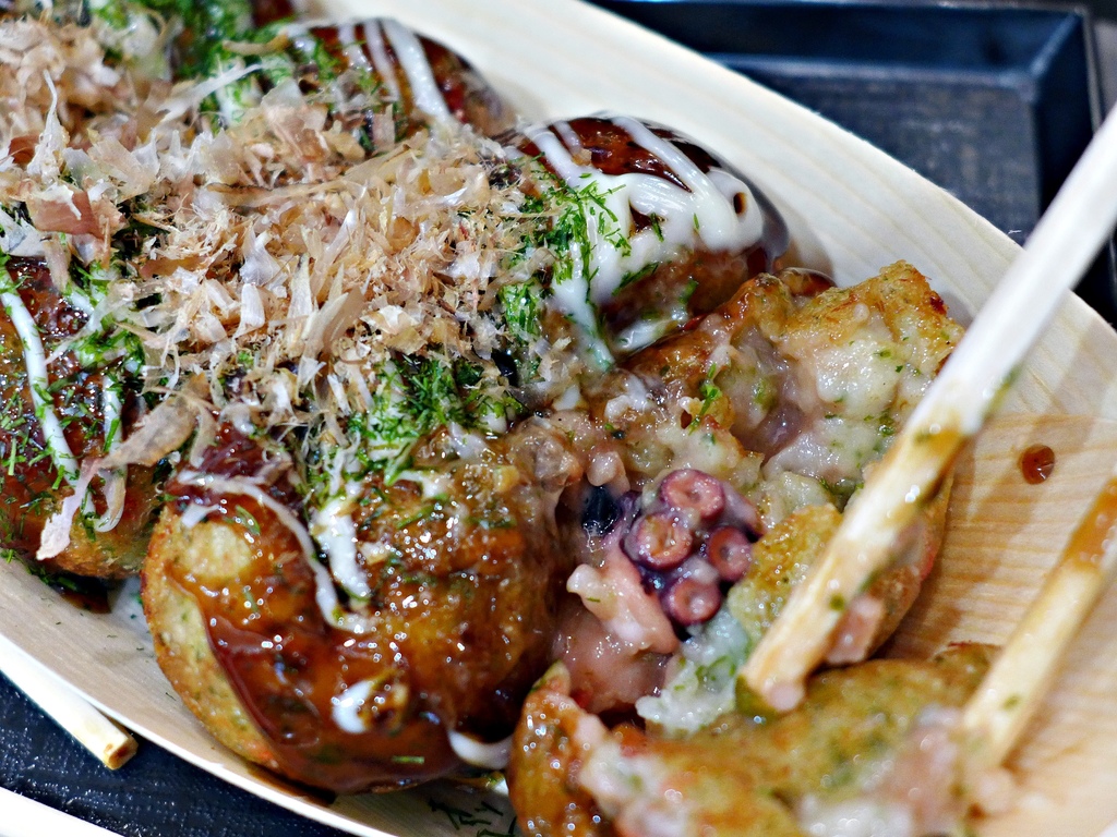 日本的章魚燒不管吃哪一家,裡面都會有整塊整塊的章魚!超讚的。