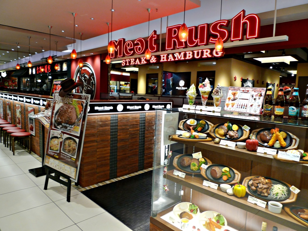 我們吃的這一家是位在梅田的Yodobashi百貨裡面,店名叫做Meat Rush的牛排店,