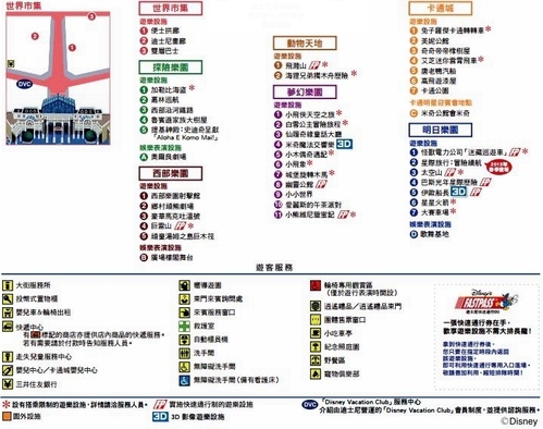 這是東京迪士尼樂園的園區地圖,總共分為七大區,真的比香港迪士尼大很多耶!感覺好像大了一倍,哈。