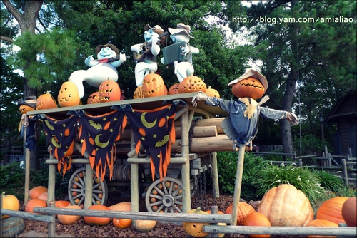 這個時間迪士尼的園區都已經換上萬聖節的布置了!到處都是南瓜,很有趣!