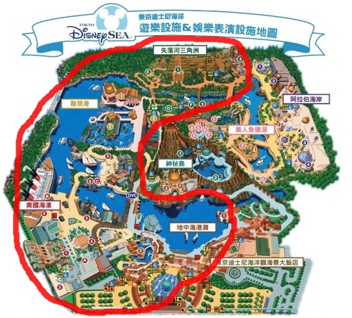 開始來做介紹啦,首先複習一下東京海洋迪士尼的園區地圖。