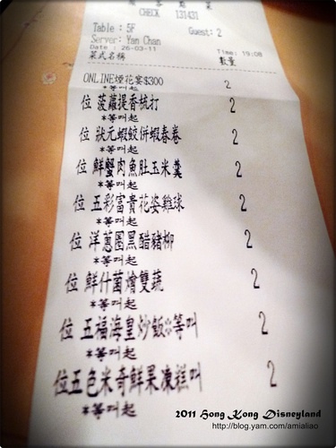 雖然比不上迪士尼另一家晶荷軒餐廳的料理精緻,但因為是美心集團的餐廳,所以差也差不到哪裡去。