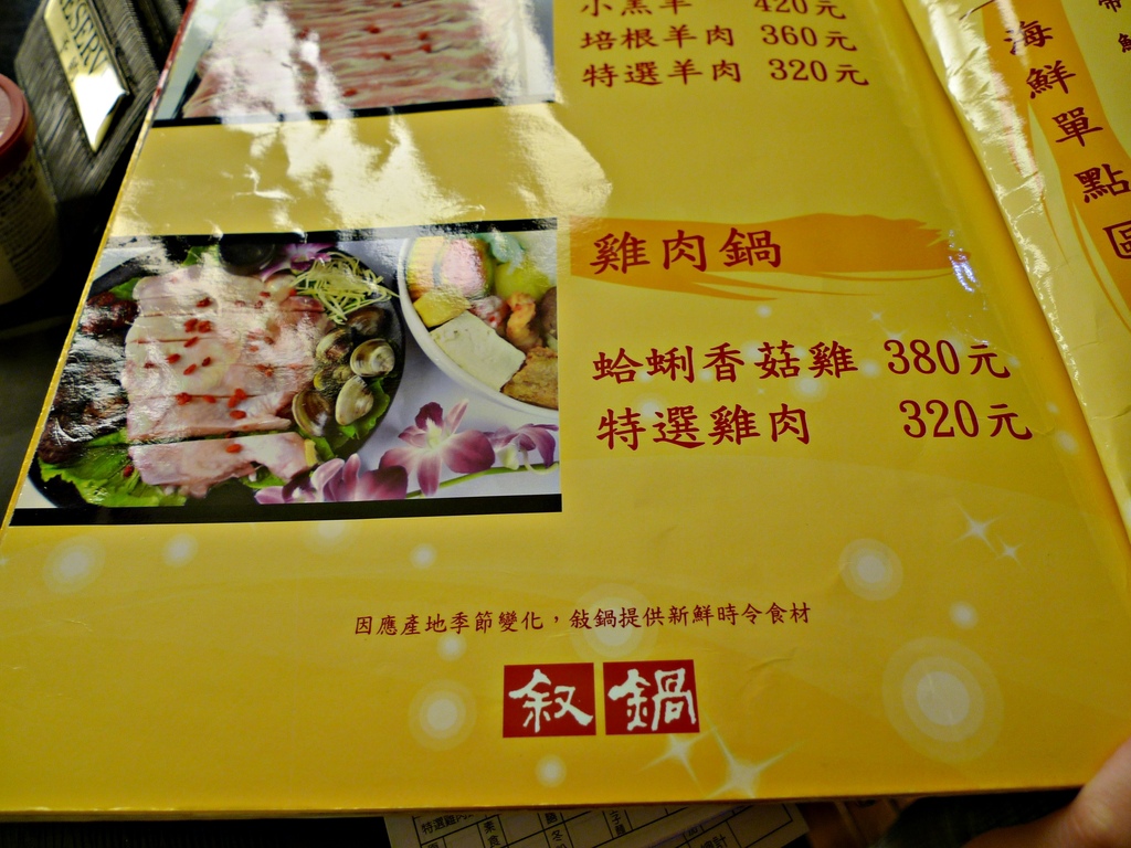 我點的是雞肉鍋裡面的蛤蠣香菇雞,金額是380元。