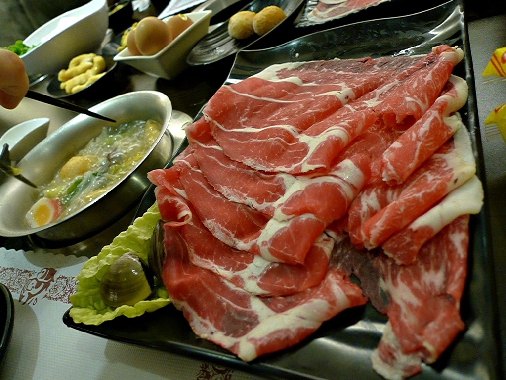 這一張是坐我旁邊的小個點的牛肉鍋,肉好大片唷!我們還玩了<牛肉面膜>的遊戲,展開來好像可以敷臉一樣那麼大!哈哈哈!