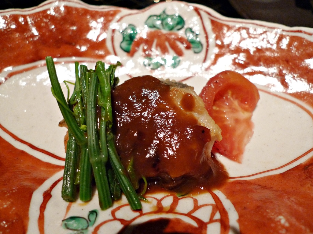 一樣是鱈魚吧!不過我比較喜歡剛剛那個乾煎的,這一個醬汁比較鹹一點。